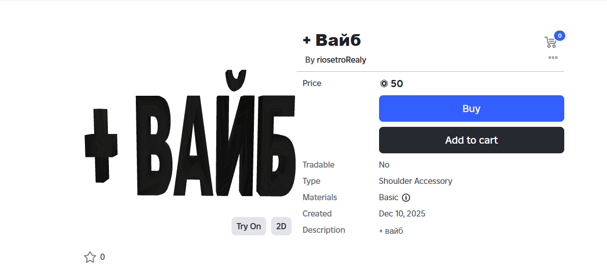 Купи мою UGC в Roblox! Каждая покупка помогает поддерживать сайт бесплатным и добавлять новые функции для всех пользователей.